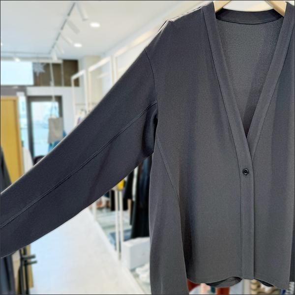 薄手ながらストレッチの効いたしっかりとした素材のカーディガン。