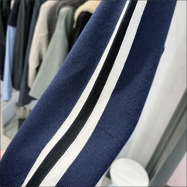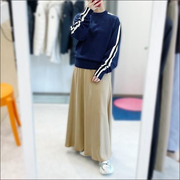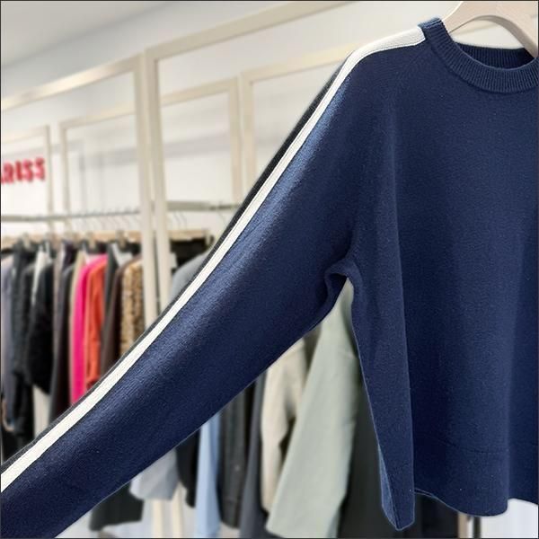 身頃はシンプルに、袖に施されたラインデザインが程よいアクセントとなり、どこかスポーティで軽快なムードを演出します。