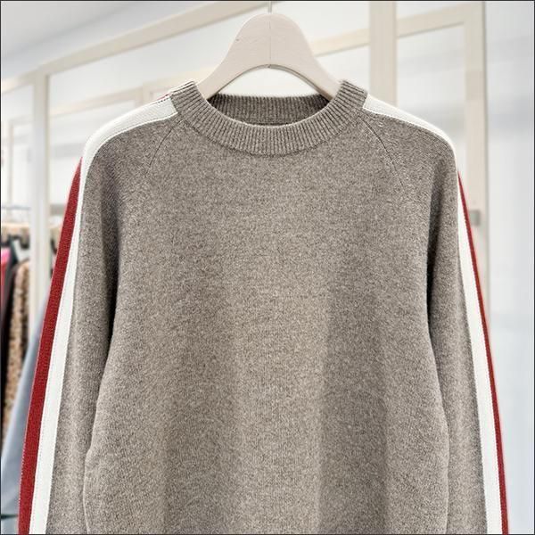 ヤク×メリノウールの柔らかな風合いが心地よい、ショルダー配色ニットプルオーバー。