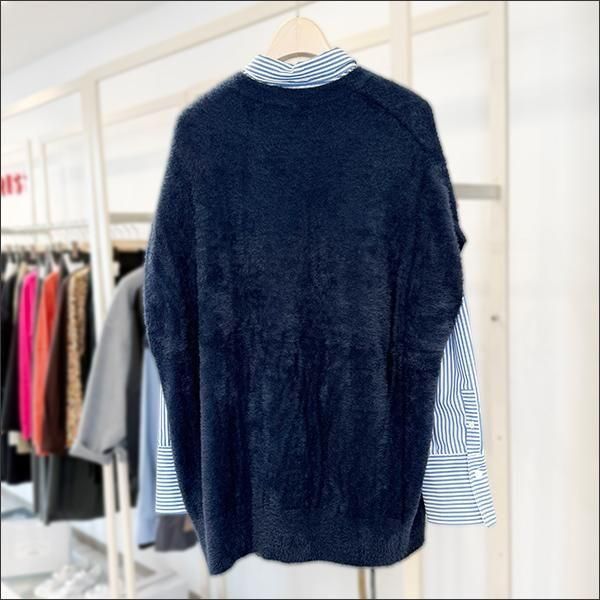 ヒップにかかるぐらいの着丈感と緩めの身幅でスッポリと着られ、合わせやすいのもポイント。