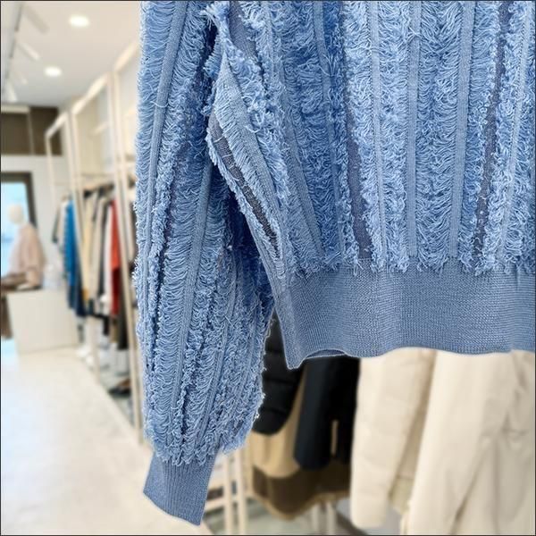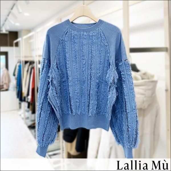Lallia Mu (ラリアムー) シアーフリンジプルオーバーニット 2513460 blue