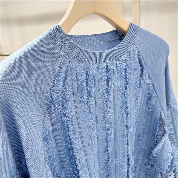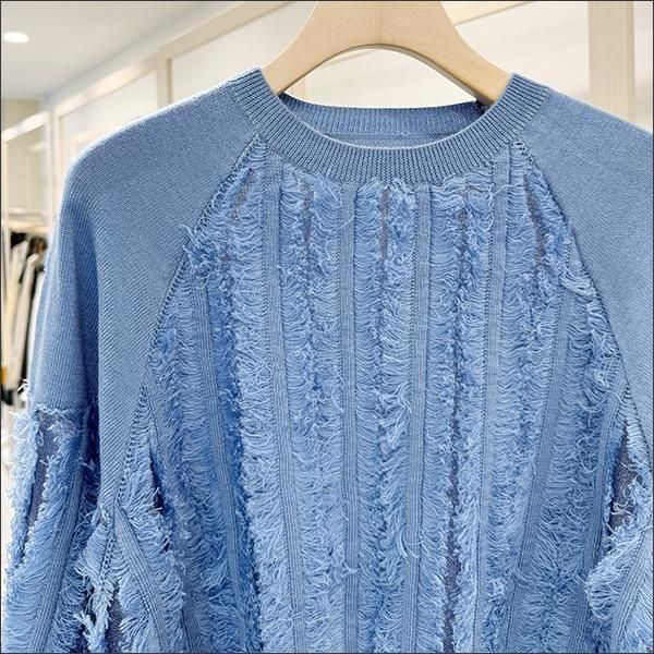 「まるで秋の陽日を透かす薄雲のように」繊細なシアー素材にフリンジを合わせたニットプルオーバー。