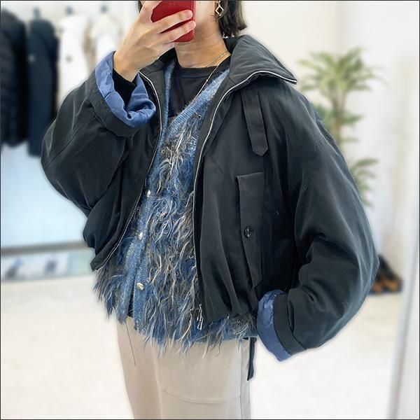 TELA (テラ) クロップド丈ナイロンジャケット PANDA/MIC Black