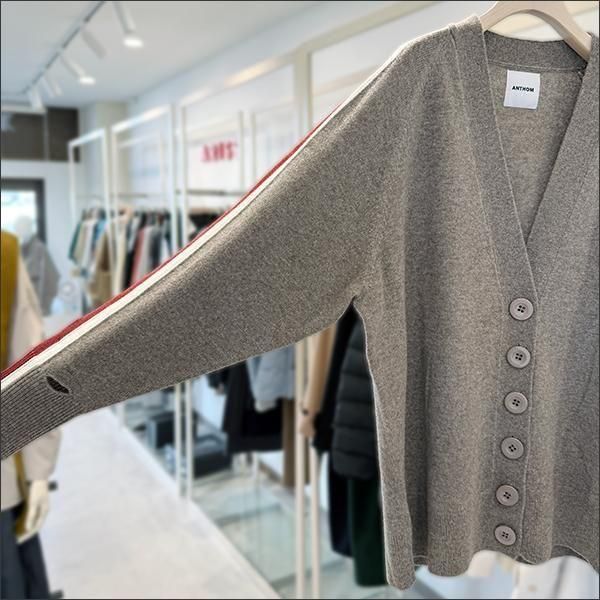 ヤク×メリノウールの柔らかな風合いが心地よい、ショルダー配色ニットカーディガン。
