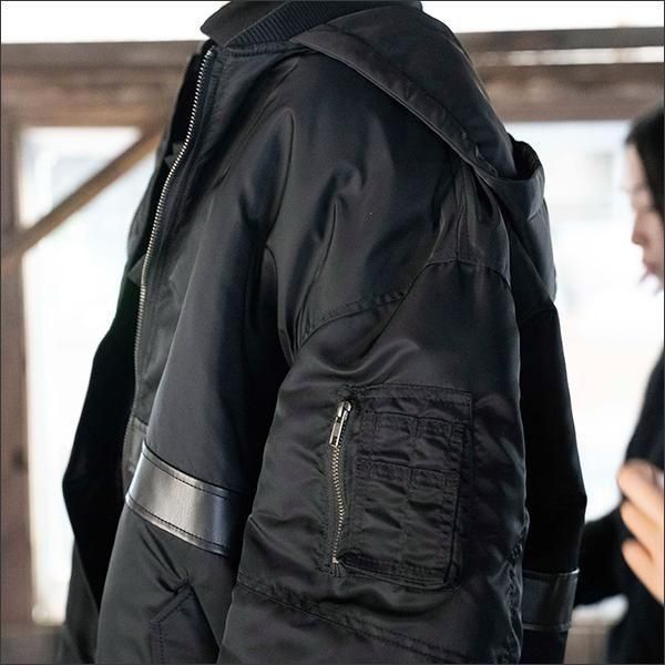 分断された衣服の要素、MA-1とパーカーのフードの利点を組み合わせています。