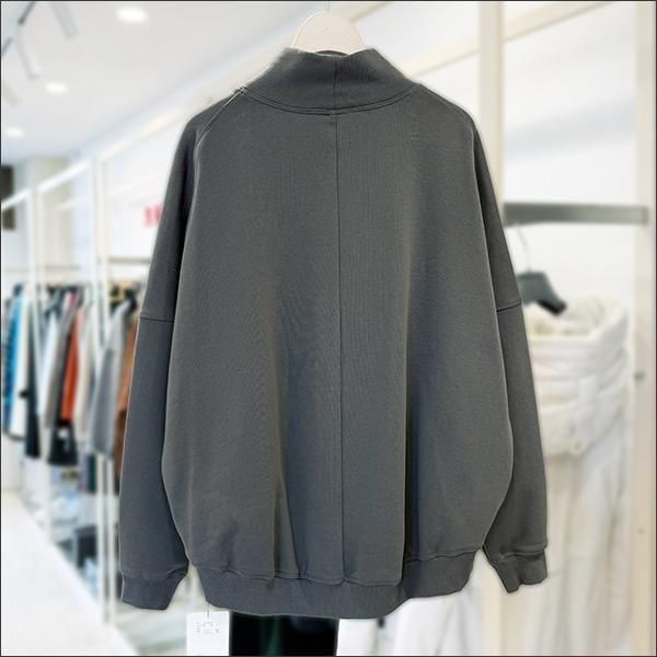 全体的にゆとりを持たせたシルエットは快適な着心地で、首元はゆとりを持たせたハイネックデザインなのでインナーにタートルニットやシャツなどをレイヤードして着用可能です。