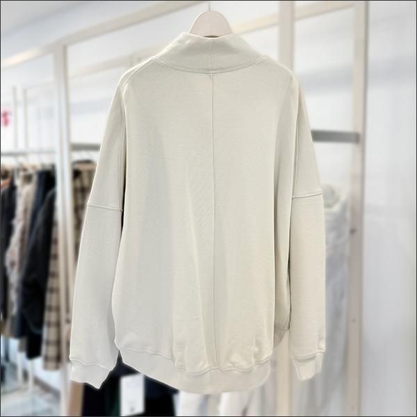 全体的にゆとりを持たせたシルエットは快適な着心地で、首元はゆとりを持たせたハイネックデザインなのでインナーにタートルニットやシャツなどをレイヤードして着用可能です。