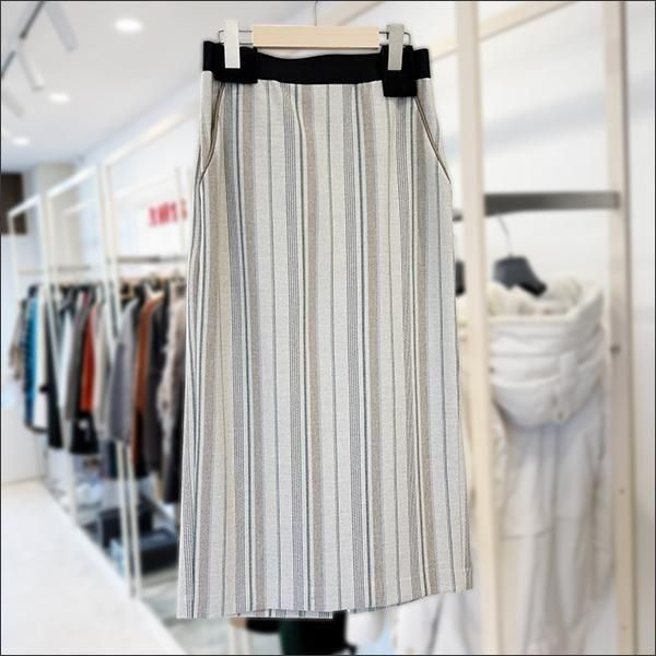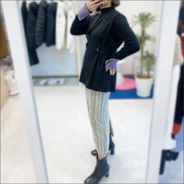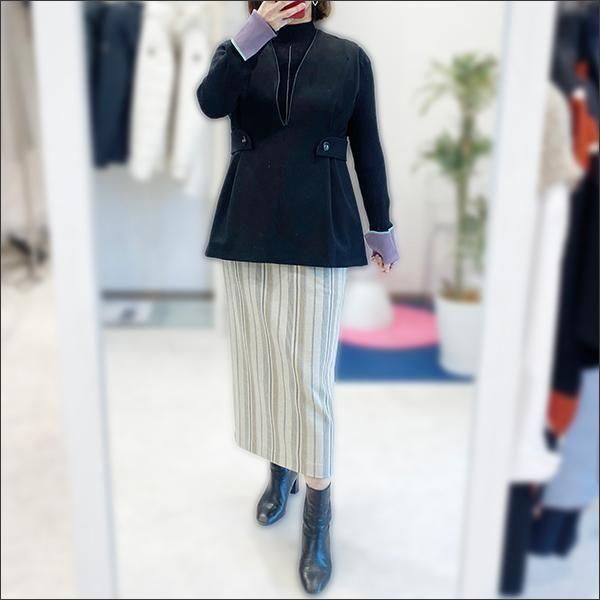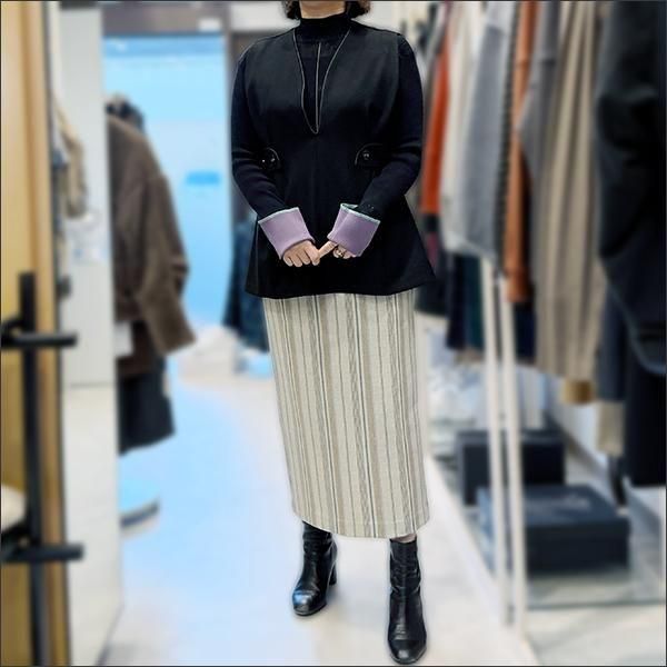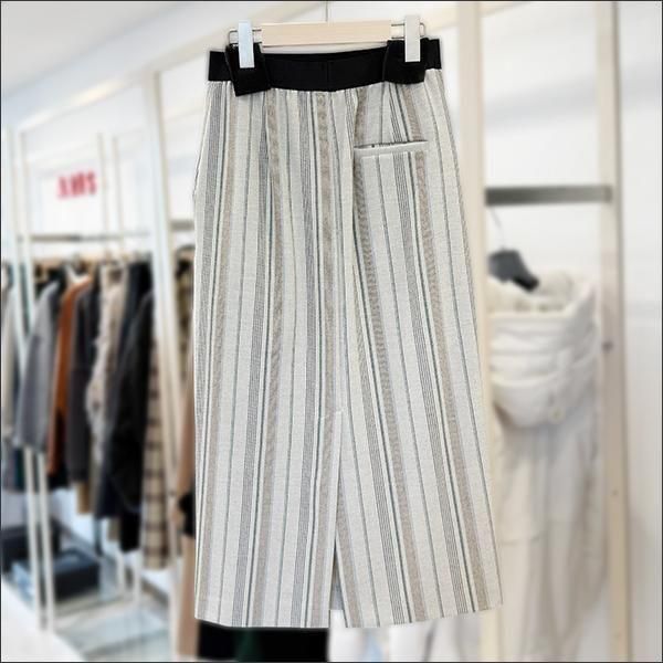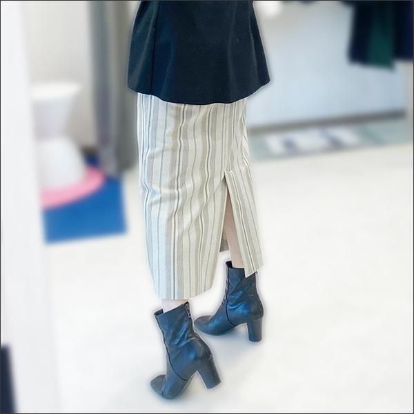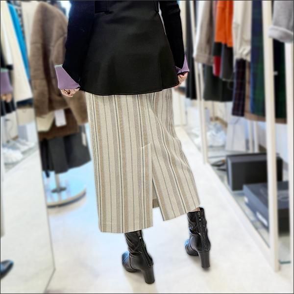 温もり感のある優しい印象のストライプが冬に映えるタイトボトムです。