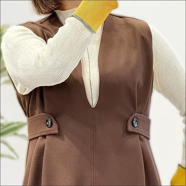 表裏、両面に起毛加工が施され、滑らかですべり良く、インナーにニットを重ねても、もたつきません。