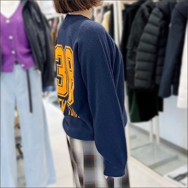 PLUS PLUS ジャガードバックナンバリングカシミヤニット「38」 562449 094